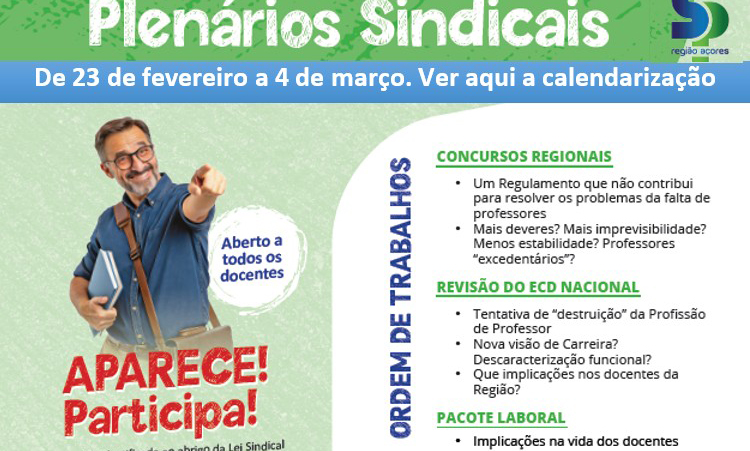 InícioAcção SindicalPlenários Sindicais – fevereiro e março 2026